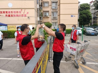 在西校区,校区内20余名教职工党员志愿者参与人员排查、居家管控、物资配送、政策宣传、核酸检测等工作。调动各方资源,积极联络附近超市、菜市场,热心服务校区住户,帮助收集、送出数据,主动关心老年团体,用心用情服务群众。共计走访排查1000余户,传递物资1000余件,核酸检测1157户、2861人。